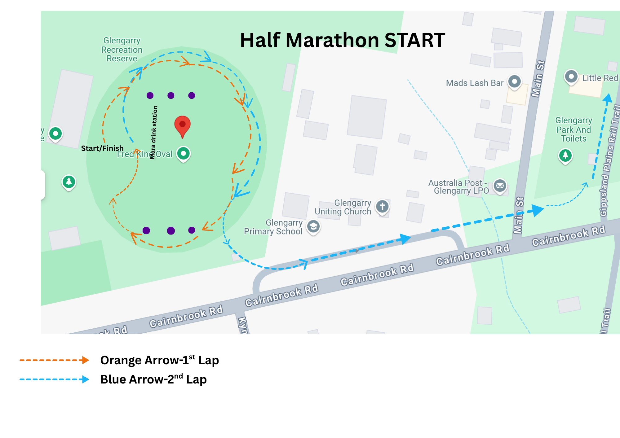 Note: the below course maps are for the 2025 course. Based on feedback, the course for the Half Marathon & Marathon may be slightly adjusted (mostly change in lap format on the oval) for 2026 - stay tuned.